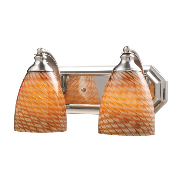 Bath And Spa 2 Light Vanity In Satin Nickel And Cocoa Glass