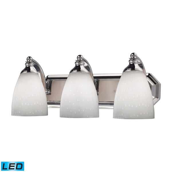 Bath And Spa 3 Light LED Vanity In Polished Chrome And Simple White Glass
