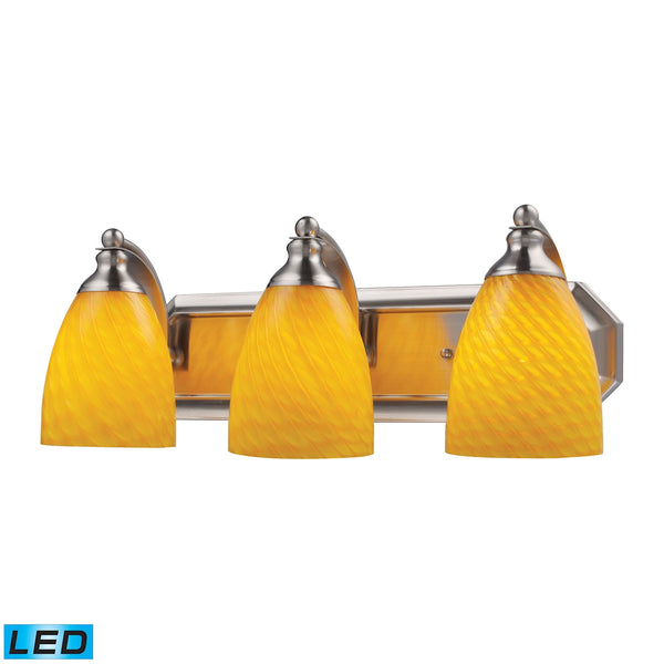 Bath And Spa 3 Light LED Vanity In Satin Nickel And Canary Glass