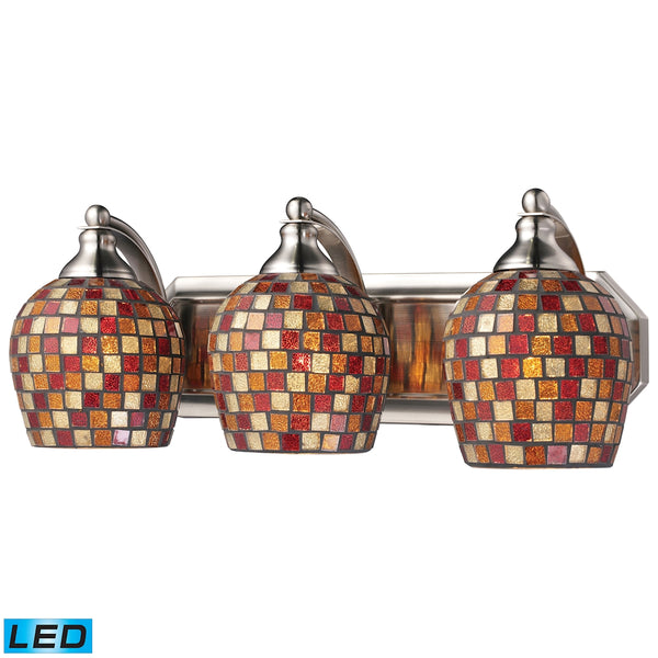 Bath And Spa 3 Light LED Vanity In Satin Nickel And Multi Fusion Glass