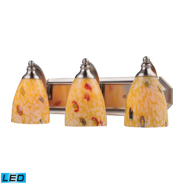 Bath And Spa 3 Light LED Vanity In Satin Nickel And Yellow Glass