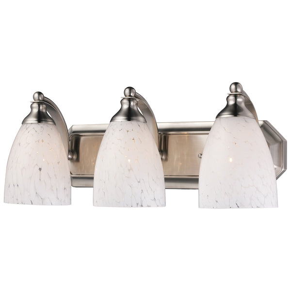 Bath And Spa 3 Light Vanity In Satin Nickel And Snow White Glass