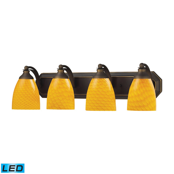 Bath And Spa 4 Light LED Vanity In Aged Bronze And Canary Glass