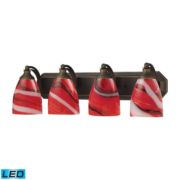 Bath And Spa 4 Light LED Vanity In Aged Bronze And Candy Glass
