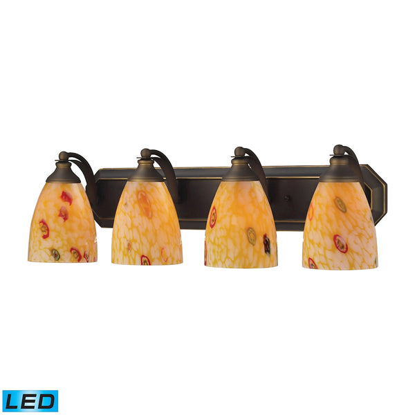 Bath And Spa 4 Light LED Vanity In Aged Bronze And Yellow Glass