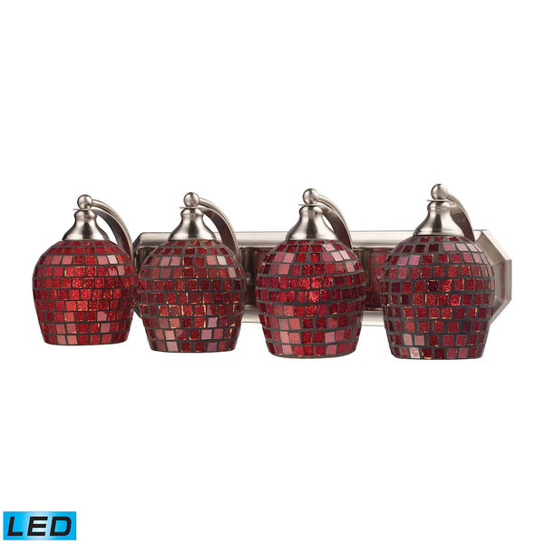 Bath And Spa 4 Light LED Vanity In Satin Nickel And Copper Glass