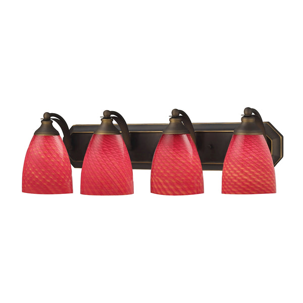 Bath And Spa 4 Light Vanity In Aged Bronze And Scarlet Red Glass