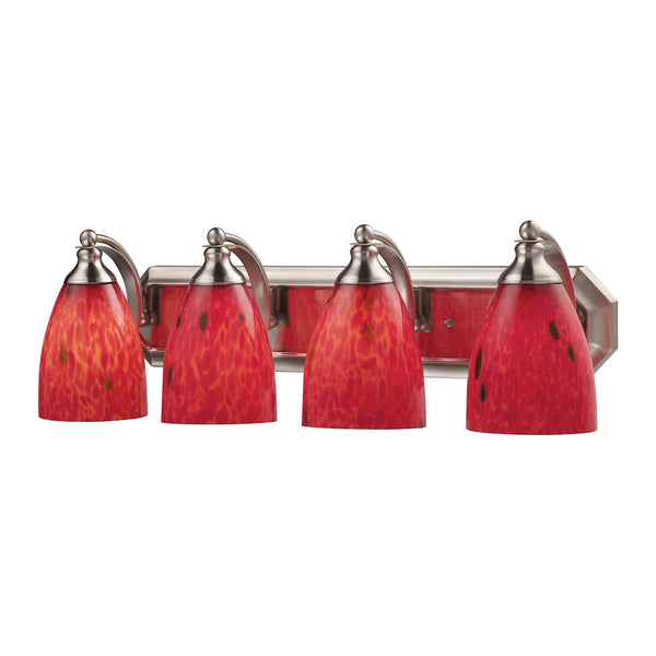 Bath And Spa 4 Light Vanity In Satin Nickel And Fire Red Glass