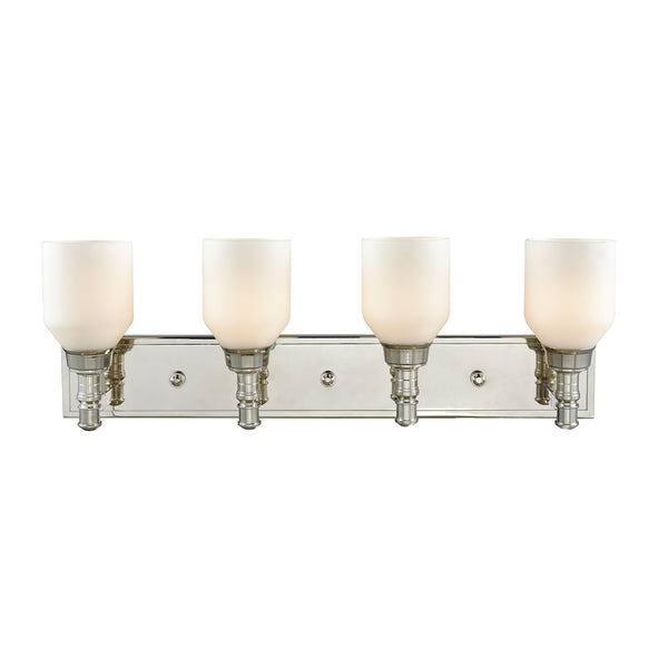 Baxter 4 Light Vanity In Polished Nickel With Opal White Glass