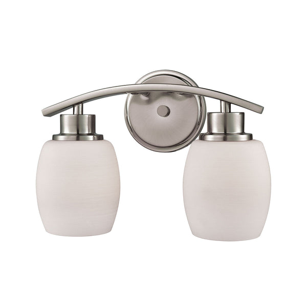 Casual Mission 2 Light Bath In Brushed Nickel With White Lined Glass