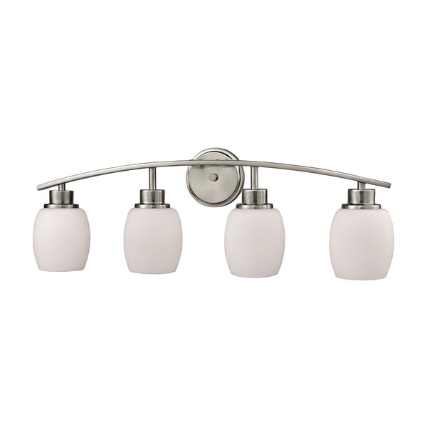Casual Mission 4 Light Bath In Brushed Nickel With White Lined Glass