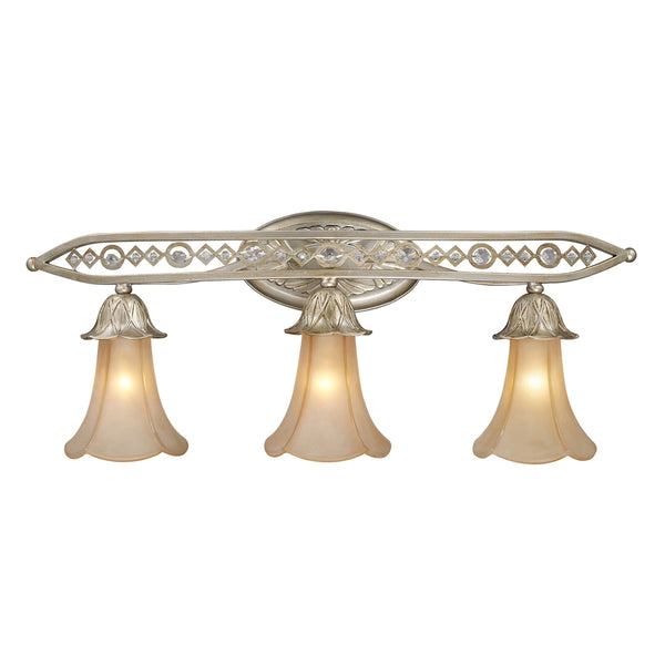 Chelsea 3 Light Vanity In Aged Silver And Beige Frosted Glass
