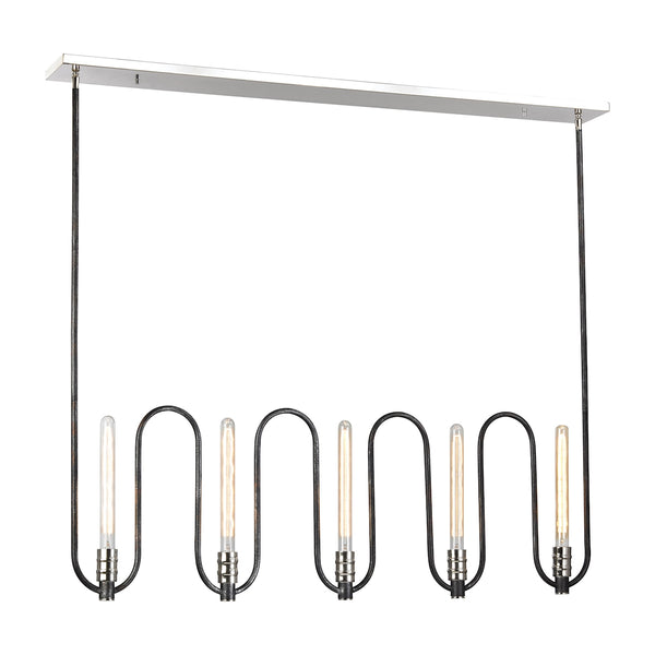 Continuum 5 Light Chandelier In Silvered Graphite With Polished Nickel Accents