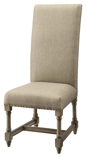 Baroque Linen Side Chair Baroque Linen Side Chair. 20" x 24.5" x 46",Wood Upholstered Side Chair with Gray Wash Wood Finish 20" x 24.5" x 46"
