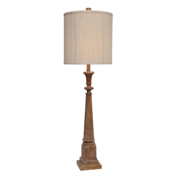 Bed Post Table Lamp 43"Ht.,Resin Rustic Wood Finish 13 x 13 x 13 Natural Linen Shade