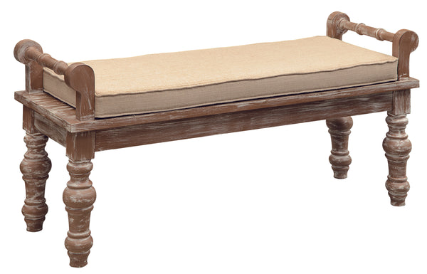 Nantucket Bench Solid Wood Bench in Weathered Wood Finish with Linen Cushion Includes Cushion 46 x 16 x 22"