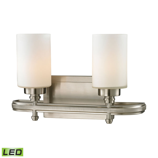 Dawson 2 Light LED Vanity In Brushed Nickel And Opal White Glass