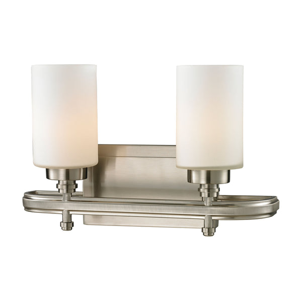 Dawson 2 Light Vanity In Brushed Nickel And Opal White Glass