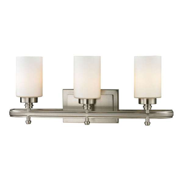 Dawson 3 Light Vanity In Brushed Nickel And Opal White Glass