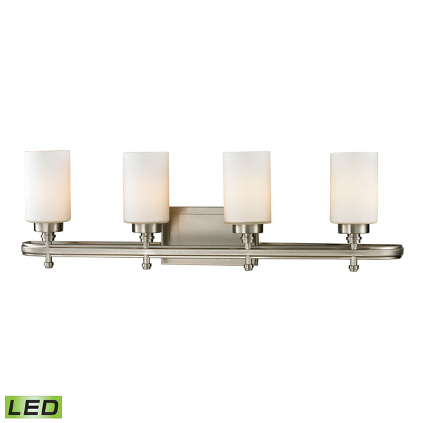 Dawson 4 Light LED Vanity In Brushed Nickel And Opal White Glass