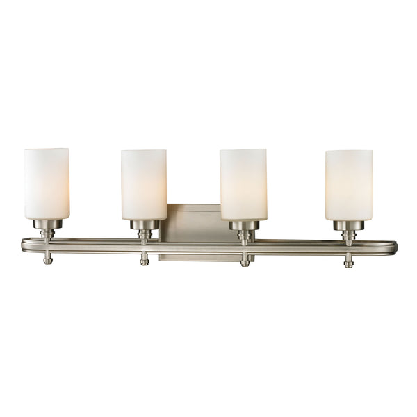 Dawson 4 Light Vanity In Brushed Nickel And Opal White Glass