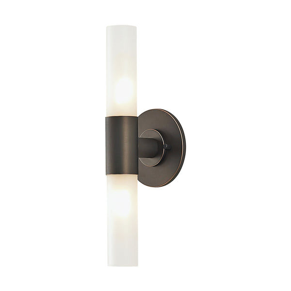 Double Cylinder 2 Light Vanity In Oil Rubbed Bronze And White Opal Glass