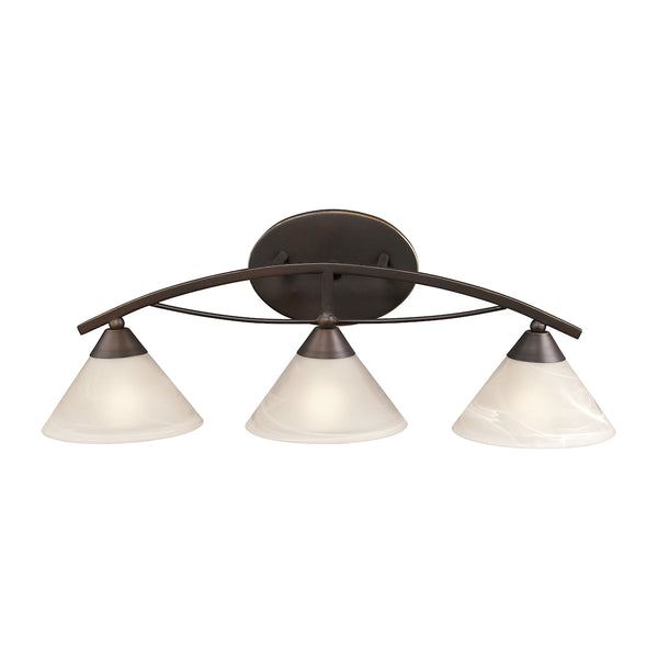 Elysburg 3 Light Vanity In Oil Rubbed Bronze And White Glass