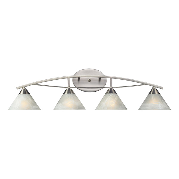 Elysburg 4 Light Vanity In Satin Nickel And White Glass