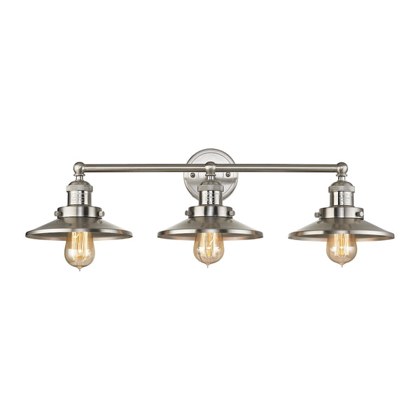 The English Pub vanity collection eludes to the simplicity in design of early 20th century lighting. Finishes include Antique Brass-Tarnished Graphite and Satin Nickel.