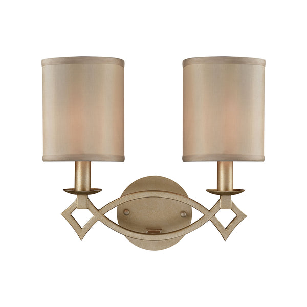 Estonia 2 Light Vanity In Aged Silver With Beige Half-Shades