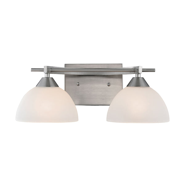 Freeland 2 Light Vanity In Brushed Nickel And Opal White Glass