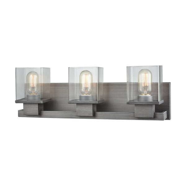 Hotelier 3 Light Vanity In Weathered Zinc With Clear Glass