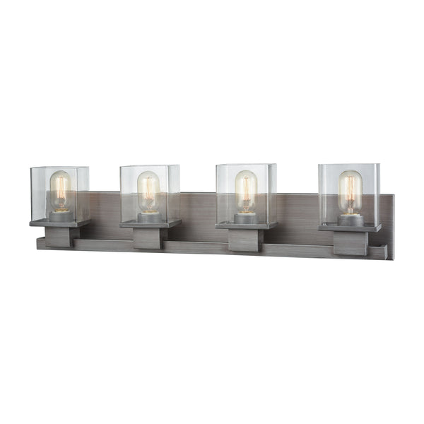 Hotelier 4 Light Vanity In Weathered Zinc With Clear Glass