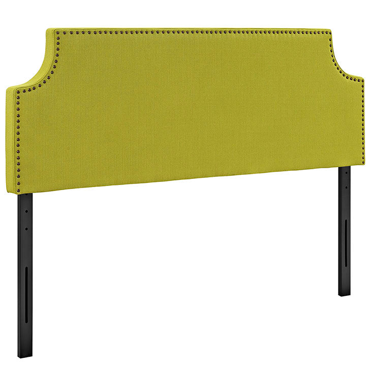 Enhance your bedroom with the elegantly designed Laura Headboard in Fabric. Made with sleek cut-out corners and a stunning nail button trim accented in silver, Laura features a solid wood frame, adjustable black coated metal legs, and dense foam padding for ultimate support. Finely upholstered in polyester and designed to delight, Laura is a refined piece that complements bedrooms admirably. Fully Compatible with Sharon, Sherry and Helen Platform Bed Frames.