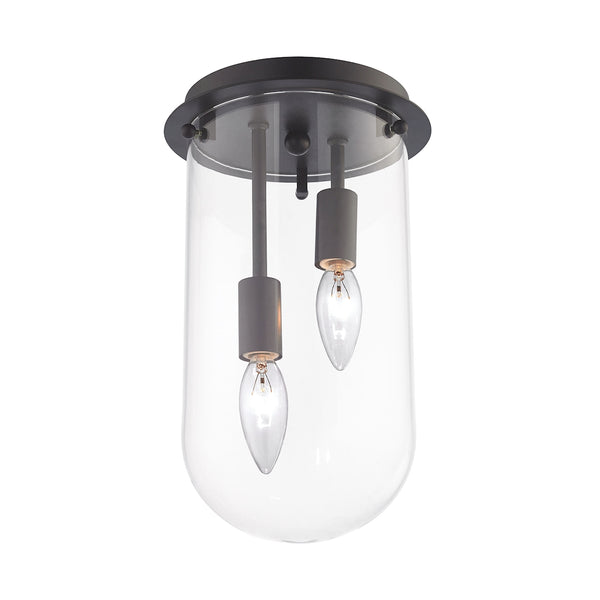 With a clean, functional light, this mini flushmount series has a clear glass shade and comes in one or two light configurations. Finishes include Polished Chrome, Antique Brass, and Oil Rubbed Bronze.
