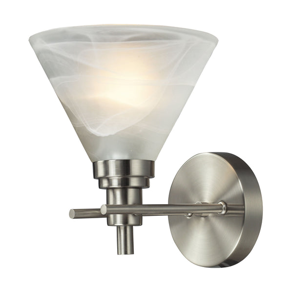 Pemberton 1 Light Vanity In Brushed Nickel And Marbelized White Glass