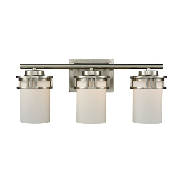 Ravendale 3 Light Bath In Brushed Nickel With Opal White Glass