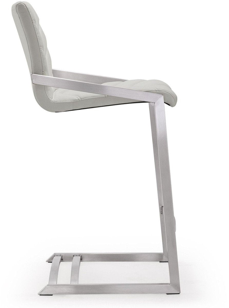 Furnish your kitchen or bar area in contemporary style with the Rio counter stool from TOV. The solid stainless steel frame provides a sturdy base, while the plush seat and footrest ensure maximum comfort. The combination of angles and gentle curves gives this stool an eye-catching appearance, while the neutral color allows it to match well with any decor.