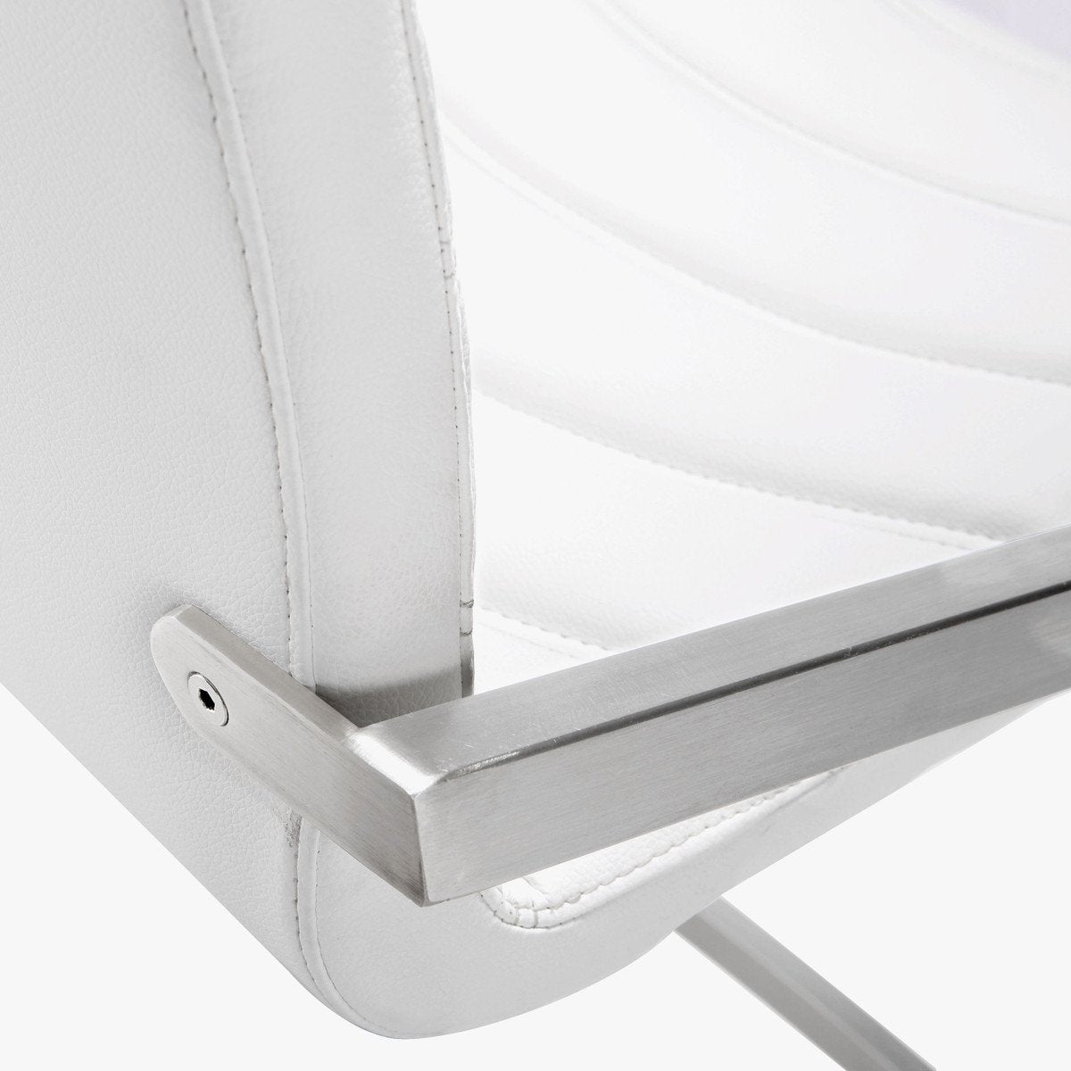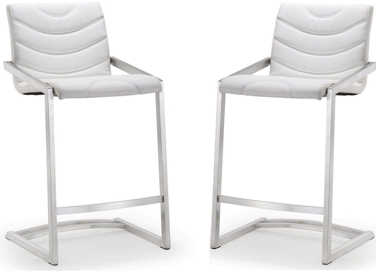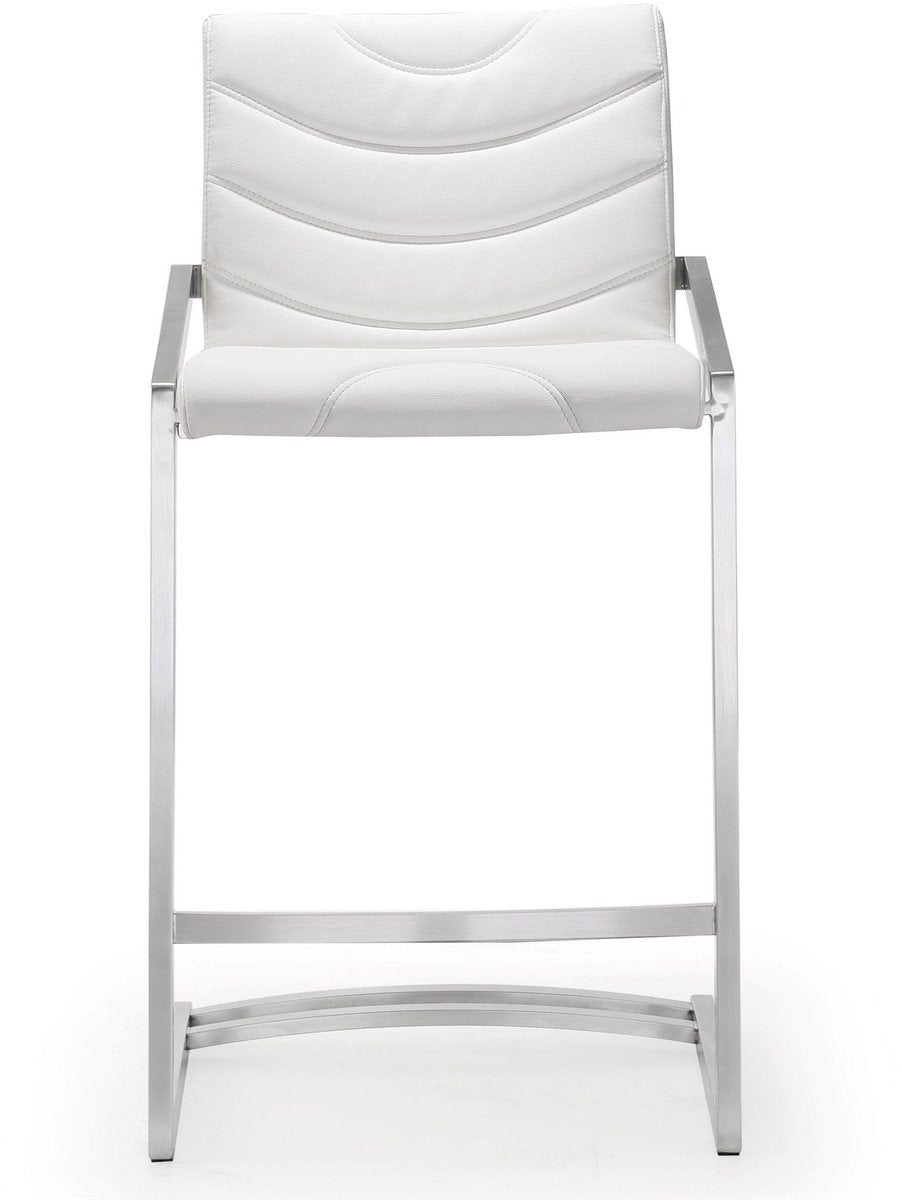 Furnish your kitchen or bar area in contemporary style with the Rio counter stool from TOV. The solid stainless steel frame provides a sturdy base, while the plush seat and footrest ensure maximum comfort. The combination of angles and gentle curves gives this stool an eye-catching appearance, while the neutral color allows it to match well with any decor.