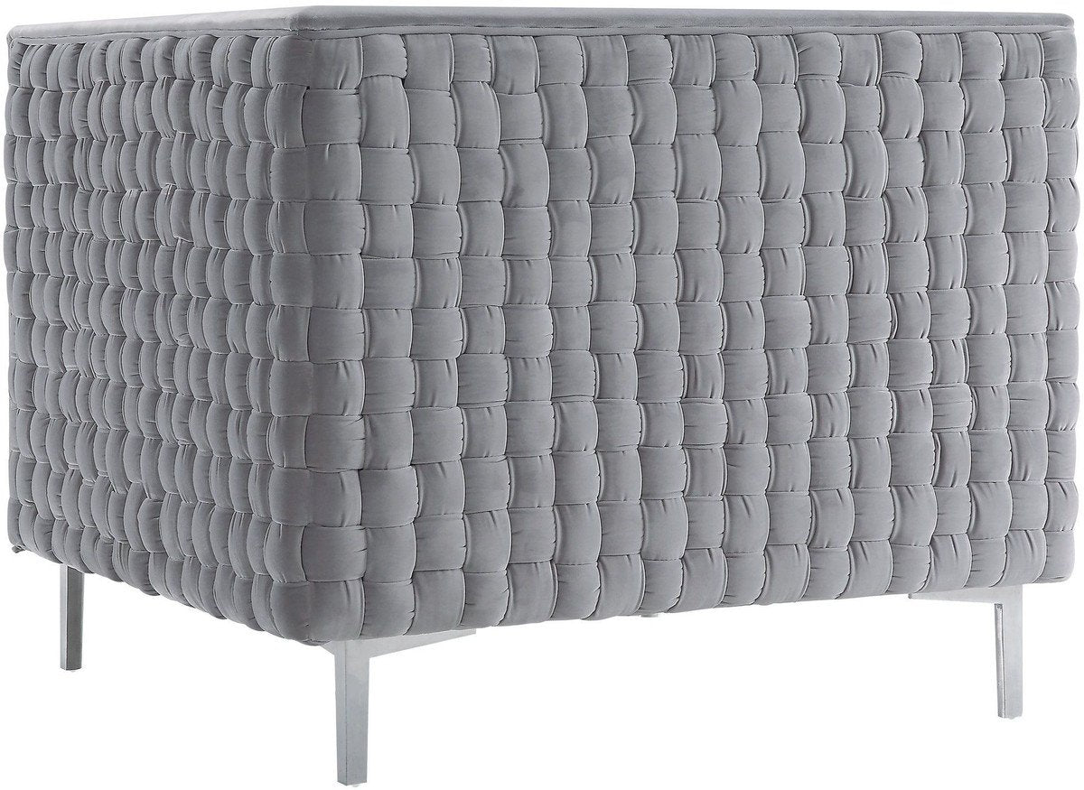 The magnificent Sal chair from T?V Furniture features an intricate hand woven pattern of plush velvet perched upon glamorous gold legs. Available in multiple sumptuous velvet color options.