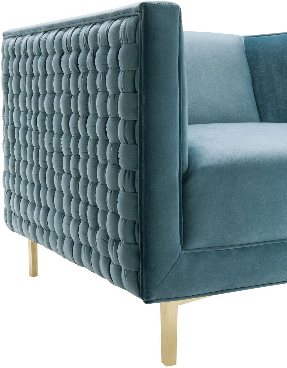 The magnificent Sal chair from T?V Furniture features an intricate hand woven pattern of plush velvet perched upon glamorous gold legs. Available in multiple sumptuous velvet color options.