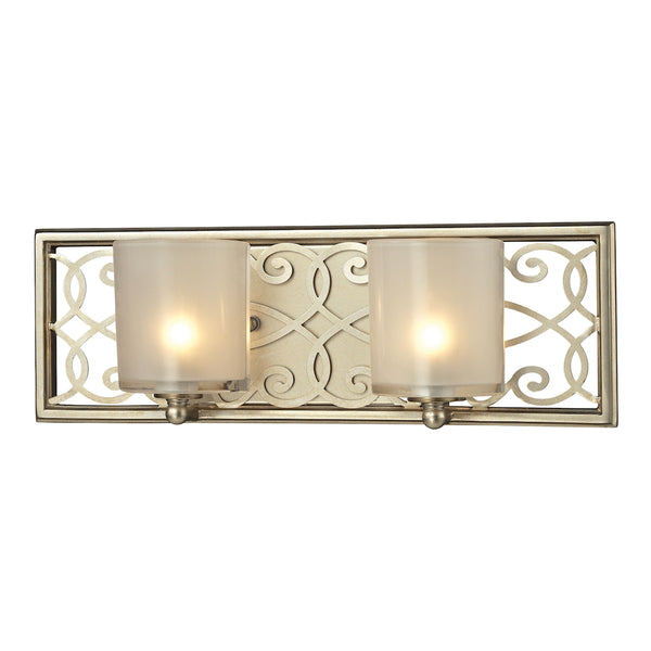 The Santa Monica collection features classic design elements demonstrated by the fleur de lis accented chain and laser cut metalwork. Conversely, a champagne fabric shade with a frosted glass diffuser and Aged Silver finish contribute to a more updated se