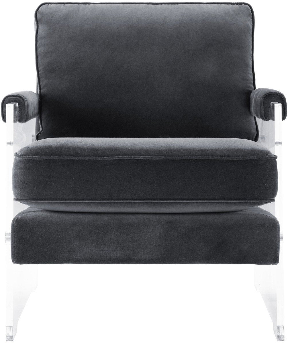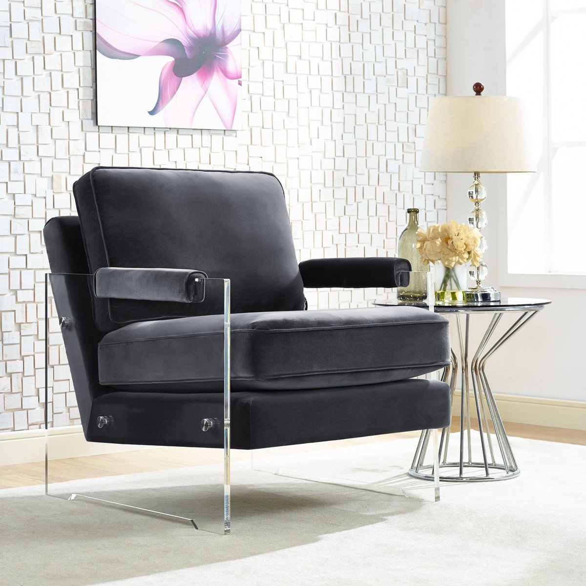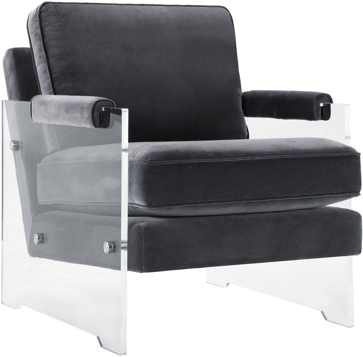 The spectacular clear lucite columns provide floating support which is sure to make an impression in any space. This wonderful chair is handmade and features removable and reversible cushions, while the solid construction will assure years of enjoyment.
