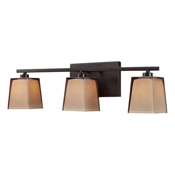Serenity 3 Light Vanity In Oiled Bronze And Tan Glass