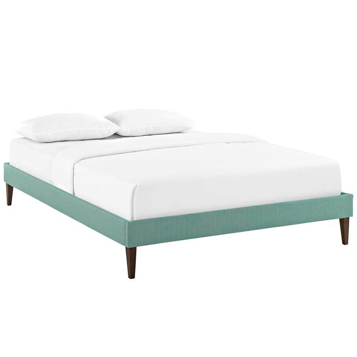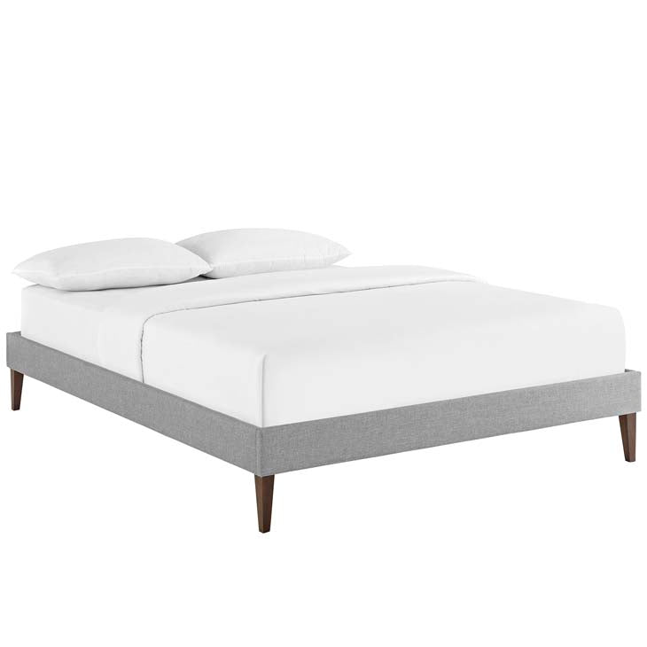 Accelerate your bedroom decor with the Sharon Platform Bed. Made with a solid wood frame upholstered in polyester fabric, Sharon features tapered wood legs, plastic foot glides, ten sturdy wood slats with a centered supporting bar and two support legs for enhanced stability. Due to the wooden slat support system, the use of a box spring is unnecessary. Sharon supports memory foam mattresses such as our Aveline series, and is compatible with one of our headboard styles: Jessamine, Terisa, Laura, Phoebe, Camille, and Josie. Perfect for mid-century modern, minimalist and contemporary bedrooms. Mattress not included.