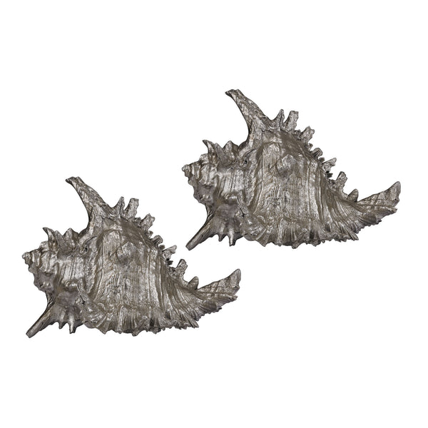 Set of 2 silver leaf whelk shells molded in composite from a genuine whelk shell