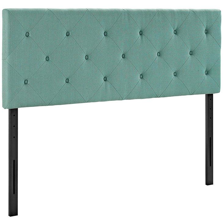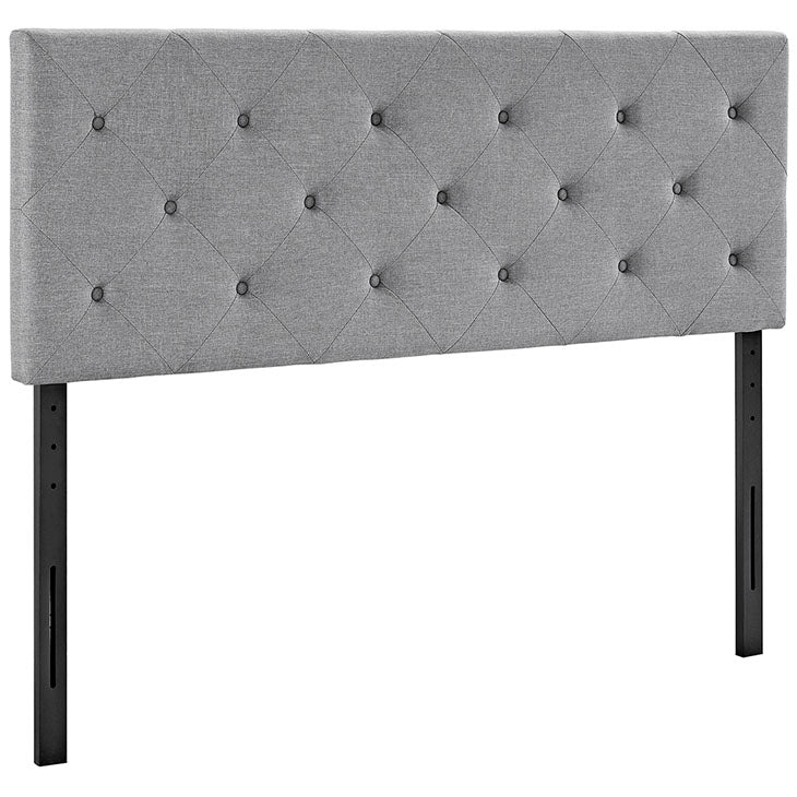 Enhance your decor with the distinguished Terisa Headboard in Fabric. Magnificently adorned with deep button tufting and a diamond-patterned trim, Terisa comes finely upholstered in polyester, a solid wood frame, adjustable black coated metal legs, and dense foam padding for ultimate support. Rejoice with a contemporary design that exceptionally compliments your bedroom decor. Fully Compatible with Sharon, Sherry and Helen Platform Bed Frames.