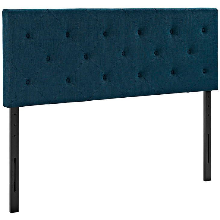 Enhance your decor with the distinguished Terisa Headboard in Fabric. Magnificently adorned with deep button tufting and a diamond-patterned trim, Terisa comes finely upholstered in polyester, a solid wood frame, adjustable black coated metal legs, and dense foam padding for ultimate support. Rejoice with a contemporary design that exceptionally compliments your bedroom decor. Fully Compatible with Sharon, Sherry and Helen Platform Bed Frames.