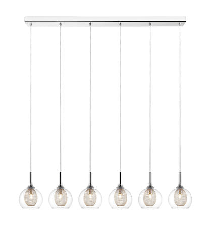 This 6 Light Island/Billiard will bring modern elegance to your décor. The chrome fixture is paired with clear glass.