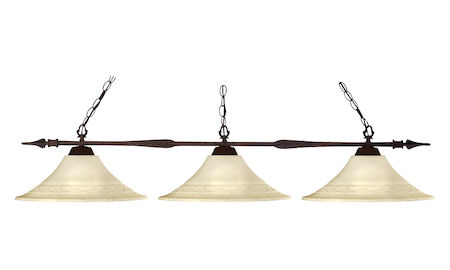 The slim styling of this three light fixture creates a classic yet modern statement. Finished in bronze, this three light fixture uses warm glowing fluted golden mottle glass shades to compliment its classic look, and 72’’ of chain per side is included to ensure the perfect hanging height